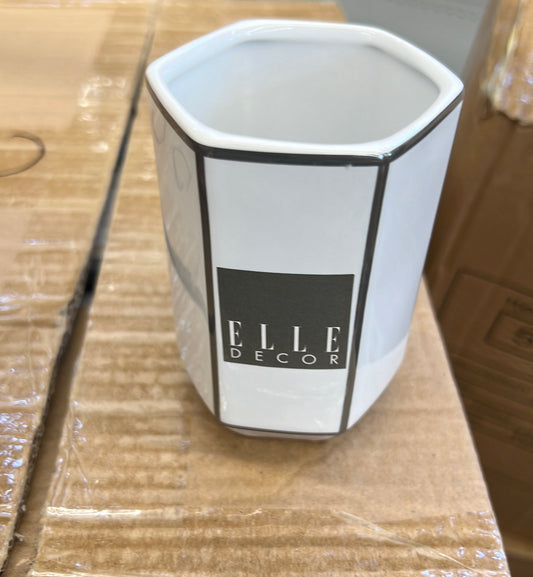 Elle Decor Embossed Ceramic Tumbler in White/gold