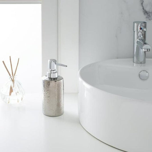 Elle Dcor Hammered Metallic Lotion Pump Dispenser in Silver