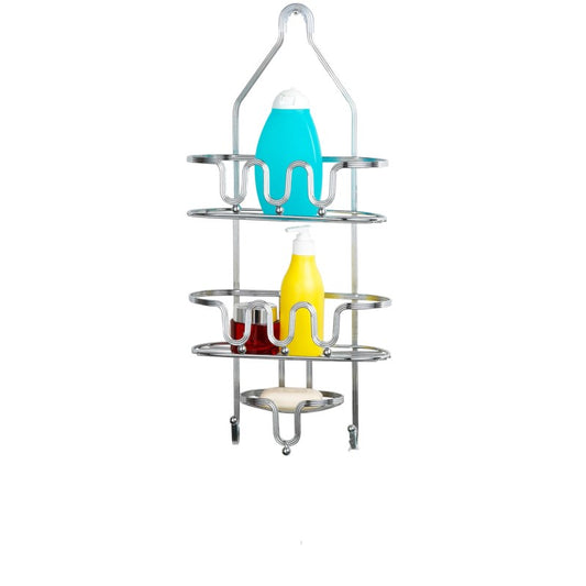 Chrome Shower Caddy with Diamond Accents, Soap Dish & Hooks