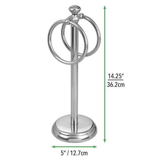 Bathroom Towel Holder Stand with 2 Hanging Rings - Chrome