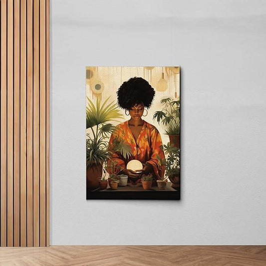 African Model - 20"x30"x1.5" Framed Canvas Wall Art w/ 30% Handpaint