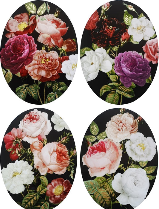 FLORALS LACQUERED OVAL CANVAS W/ GOLD FOIL - SIZE: 24" x 32" Oval