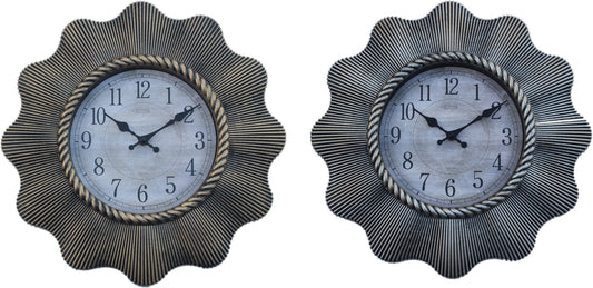 16" CORRUGATED TEXTURED CLOCKS IN DARK AND RUSTIC