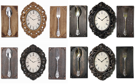 3PC CLOCK WITH SIDE ACCENTS - SIZE: 14" x 10"