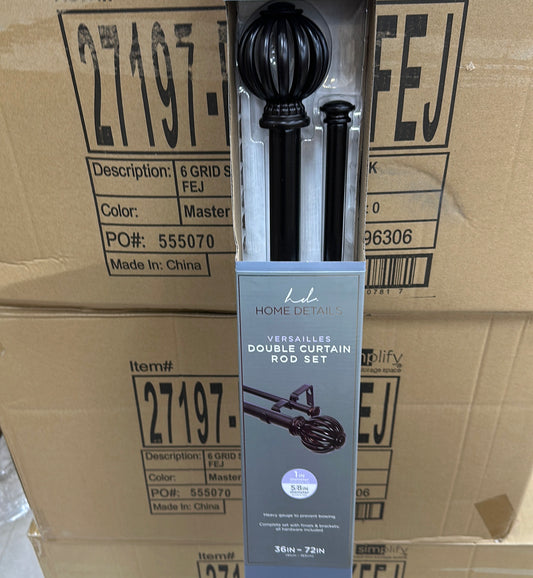 36-72in DOUBLE CURTAIN ROD VERSAILLES-DCHERRY 1" Diameter Main rod