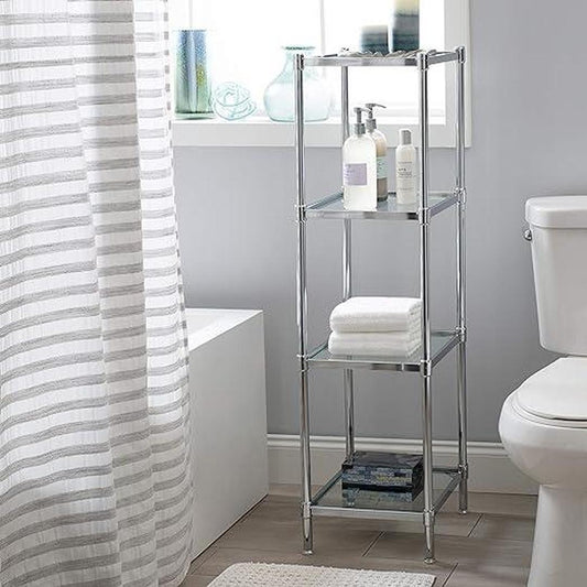 Organize It All 4 Tier Tempered Glass Freestanding Bathroom Storage Tower