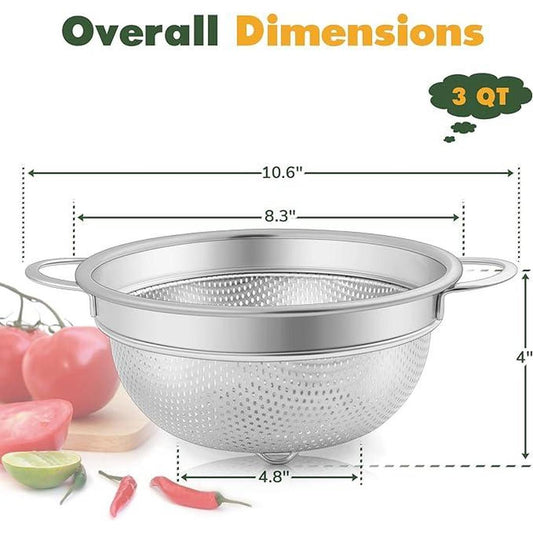E-far 3qt Stainless Steel Micro-Perforated Colander Set of 2 for Pasta, Fruits - Dishwasher Safe