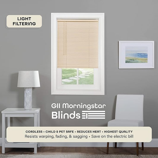 Cordless Gii Morningstar 1" Light Filtering Mini Blind, 29x72Cordless Light Filtering Mini Blind - 29 Inch Width, 72 Inch Length, 1" Slat Size - Pearl White - Cordless GII Morningstar Horizontal Windows Blinds for Interior by Achim Home Decor