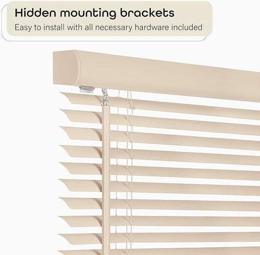 Cordless Light Filtering Mini Blind - 48 Inch Width, 64 Inch Length, 1" Slat Size - Alabaster - Cordless GII Morningstar Horizontal Windows Blinds for Interior by Achim Home Decor