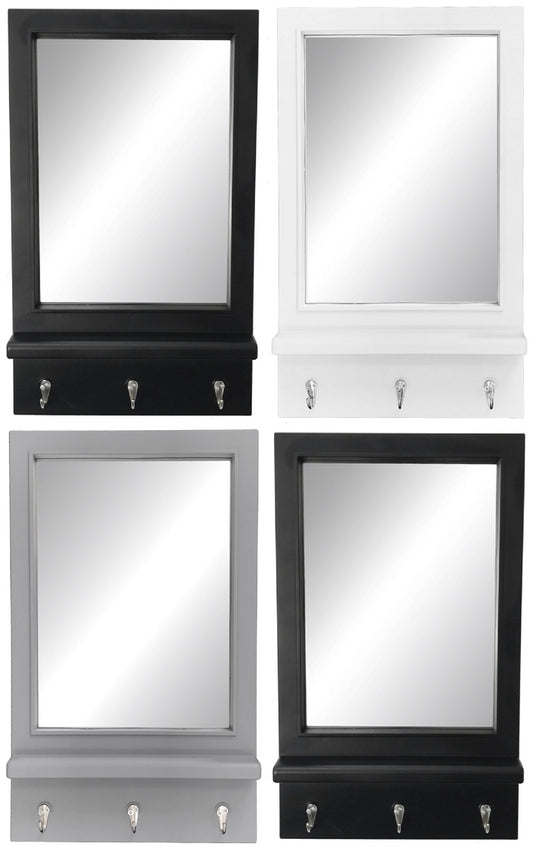 PLASTIC MIRROR W/SHELF & 3 HOOKS - SIZE: 12" x 2" x 20"