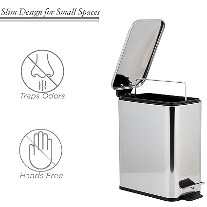 5L Slim Rectangular Pedal Bin with Soft Close Lid