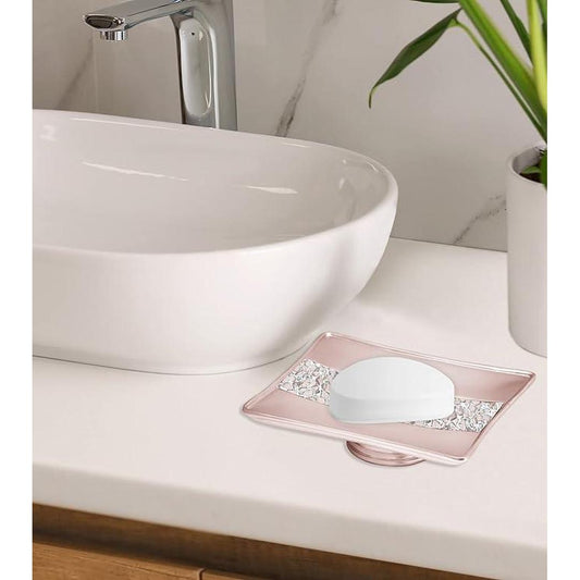 Popular Bath Sinatra Contour Bath Silver Modern Classic Bath Accessories Decorative Beautiful Hollywood Design Bathroom Accessories, Contour Rug size 21” x 24”, Blush