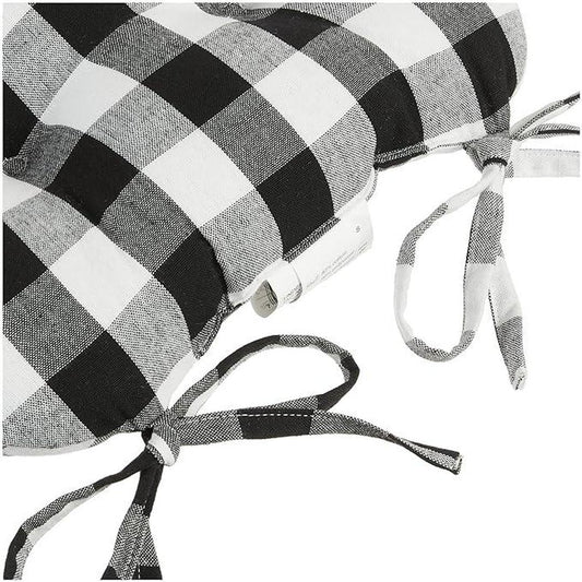 Popular Home Tufted & Extra Thick Cushion Pads Buffalo Plaid Design with Tie Backs Extra Soft Cotton Material Chair Pads , 2 Pack , Size 17" X 17", Bl