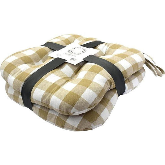 Popular Home Seat Cushion Pad, 2 Count (Pack of 1), Buffalo Plaid Taupe