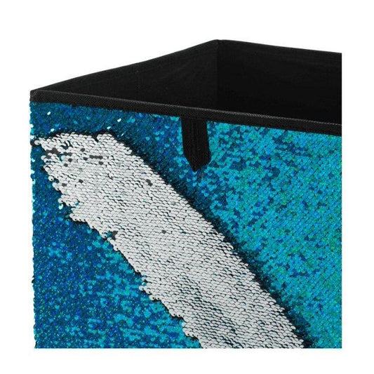 Organize It All Reversible Sequin Fabric Storage Cube in Blue/Silver