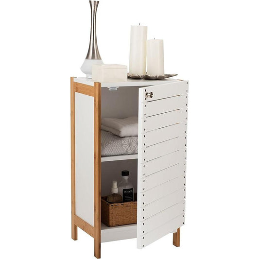 Deluxe Bamboo Floor Cabinet with Accent Slats Brown/White - Organize It All