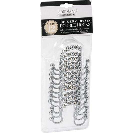 Bath Bliss 12 Pack Double Hook Shower Curtain Rings - Stylish Chrome Finish, Perfect Fit for All Shower Curtains