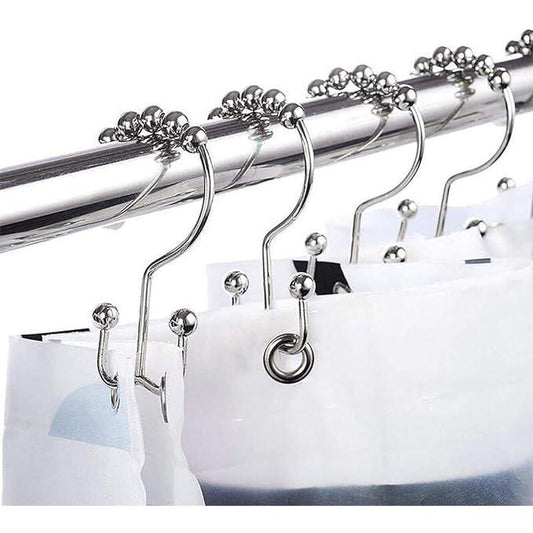 Set of 12 Chrome Double Roller Glide Shower Curtain Hooks Rings - Rust-Resistant Metal