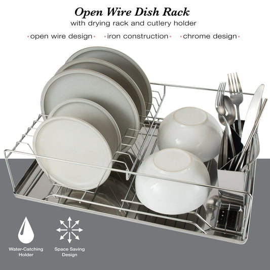 Kitchen Details 3 Piece Chrome Dishrack with Tray in Grey, 18.9" x 11.81" x 3.94"