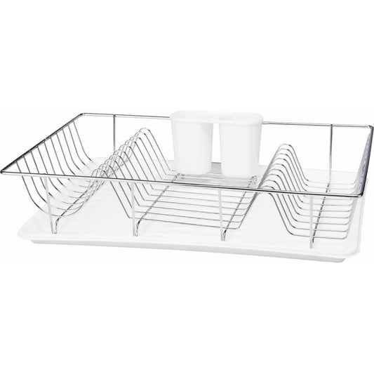 Kitchen Details Chrome 3 Piece Dish Rack Set in White