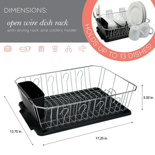 Kitchen Details Twisted Chrome 3 Piece Dish Rack in Black - 16.5" X 12.5" X 5.5"