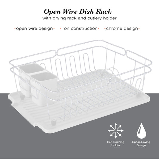 Kitchen Details Dish Rack Chrome 3 Piece Set, White (4029-WHT) | Quill