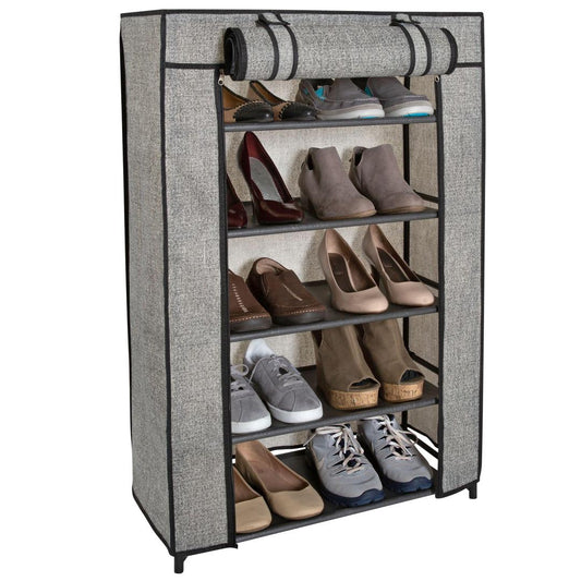 Simplify 5 Tier Shoe Storage Closet Organizer Rack with Cover, Holds 15 Pairs