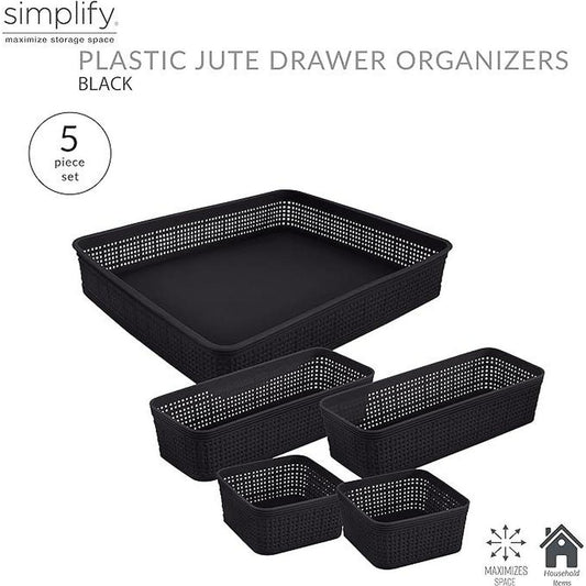 Simplify 5 Piece Organizing Set | Multiple Size Bins | Black