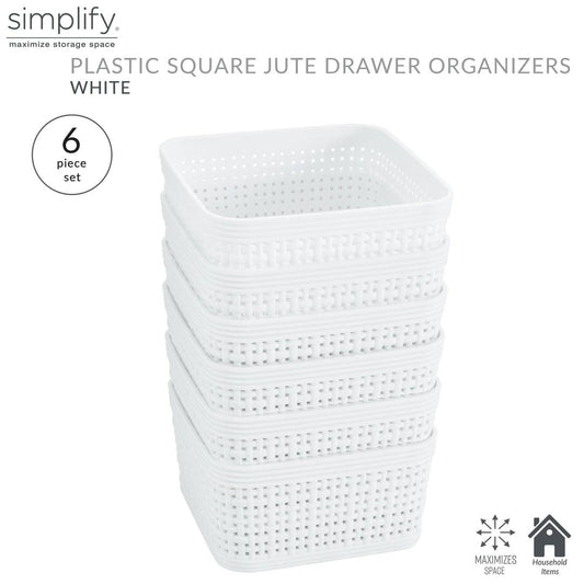 Simplify 6 Pack Plastic Organizing Storage Basket Set, White