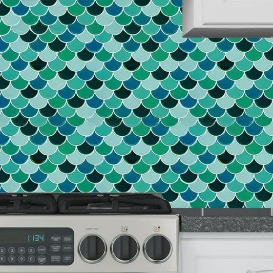 Simplify Peel & Stick Wall Tile 4 Pack in Scallop Greens Epoxy