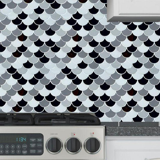Simplify Peel & Stick Wall Tile 4 Pack in Scallop Greys