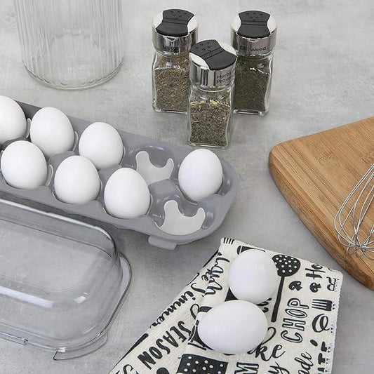 Kitchen Details 12 Egg Holder with Lid | Dimensions: 13"x 4.72"x 2.56" | Holds 12 Large Eggs | Stackable | Click Tight Clear Lid | | Kitchen Organization | White