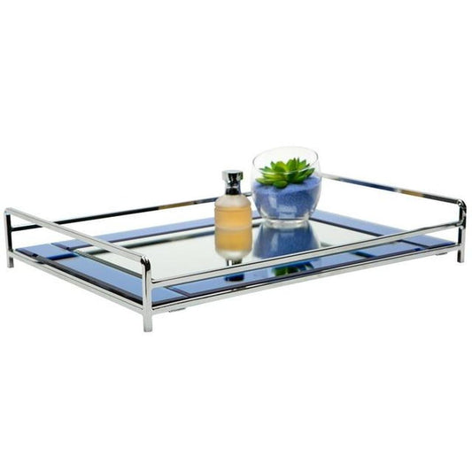 Home Details Mirrored Vanity Tray Makeup Organizer, Blue