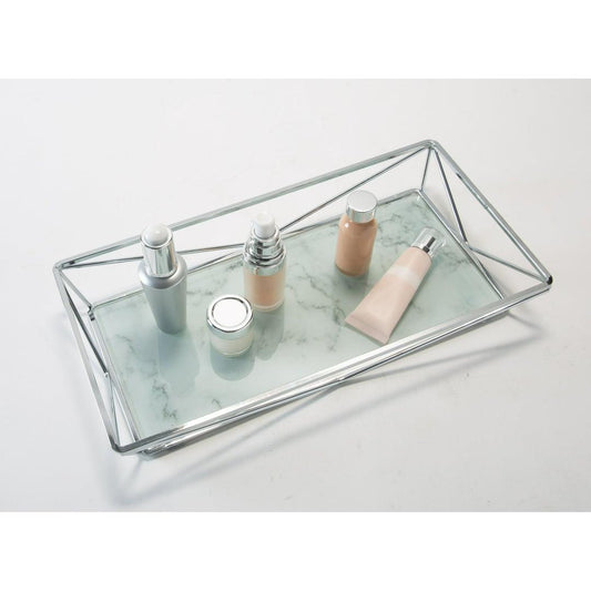 Marble Tempered Glass Rectangular Vanity Tray in Chrome