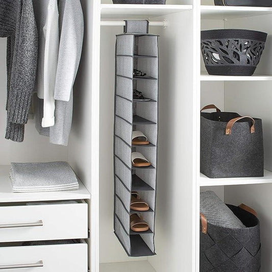 Simplify 10 Shelf Shoe Organizer | Storage Velcro | Foldable | Grey