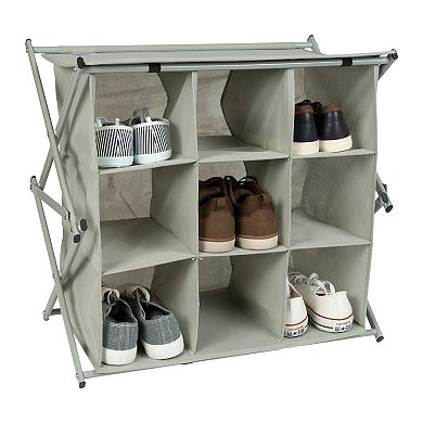 Simplify 9 Grid Collapsible Shoe Rack in Gray, Grey