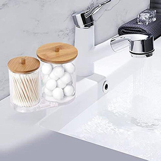 Cotton Swab Pads Holder with Bamboo Lids, Acrylic Qtip Holder