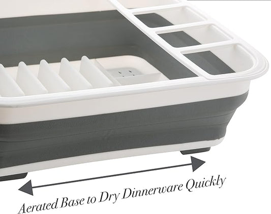 Collapsible Dish Drying Rack | Space-Saver with Aerated Drain Holes | White/Grey