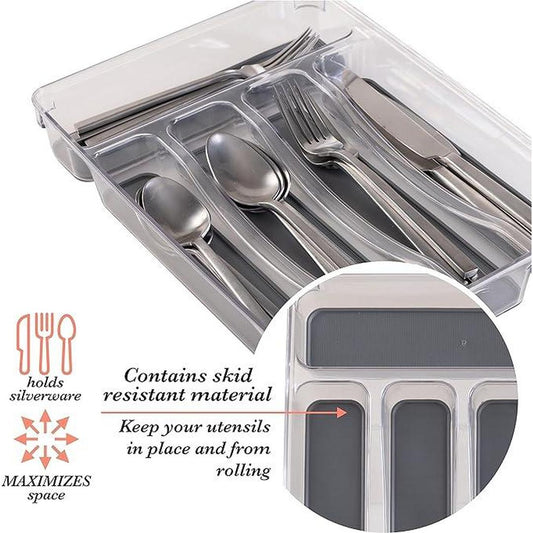 Kitchen Details Utensil and Cutlery Drawer Organizer, 5 Compartment, Clear