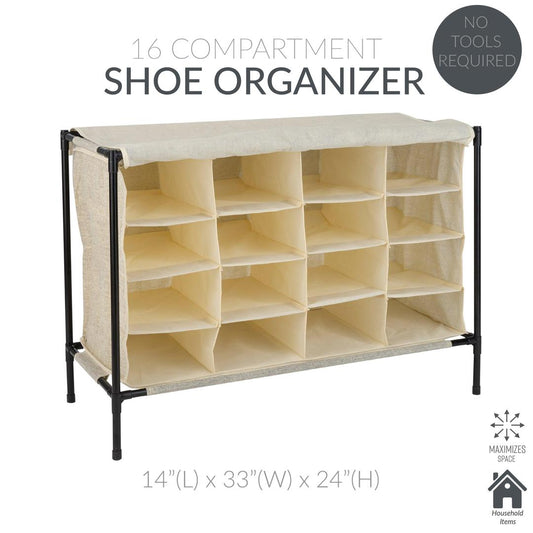 16 Compartment Shoe Cubby Organizer W/Cover, 4 Tiers - Ivory