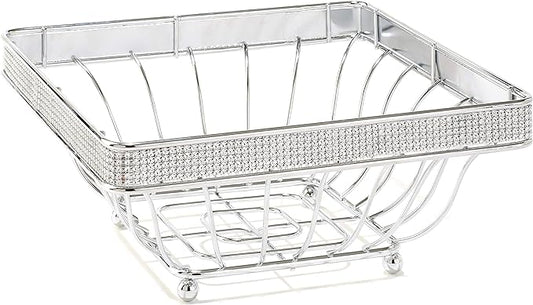 Kitchen Details Square Basket, Counter Top, Holds and Displays Fruits, Vegetables & Baked Goods, Pantry Storage & Organization, Pave Diamond Design Collection, Chrome