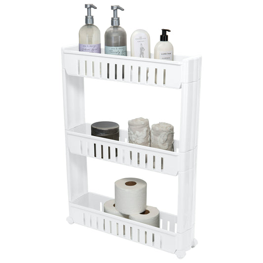 Simplify 3 Tier Slim Slide Out Storage Cart in White for Closets and Laundry Rooms