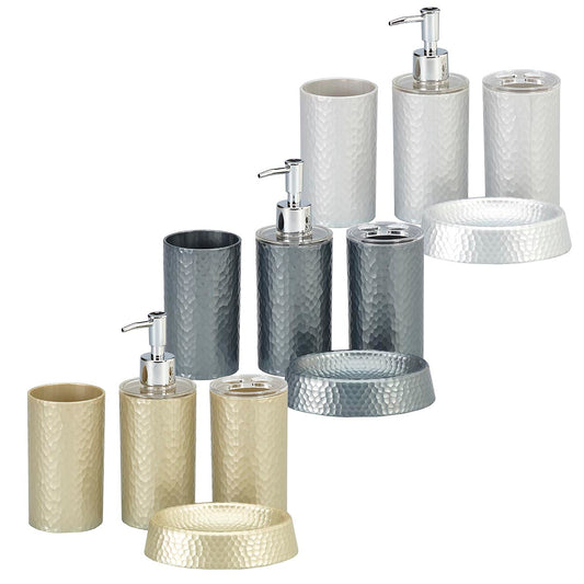 Bath Bliss Hammered Texture 4 Piece Bathroom Accessory Set, Assorted Colors