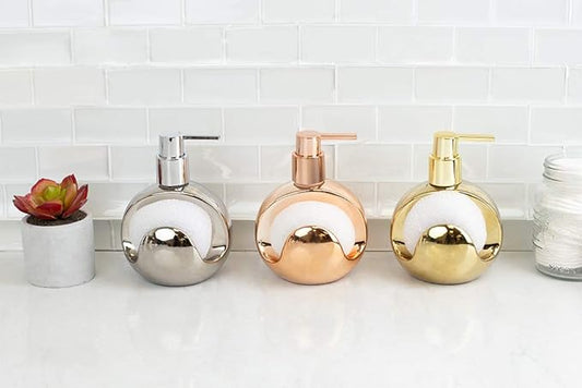 Round Ceramic Soap Dispenser XL + Scrubber Combo Asst.-Metallic colors