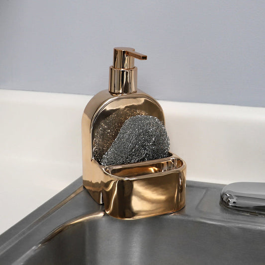 Ceramic Soap Dispenser W.Double Sponge Holder + Scrubber Combo Asst.-Metallic colors