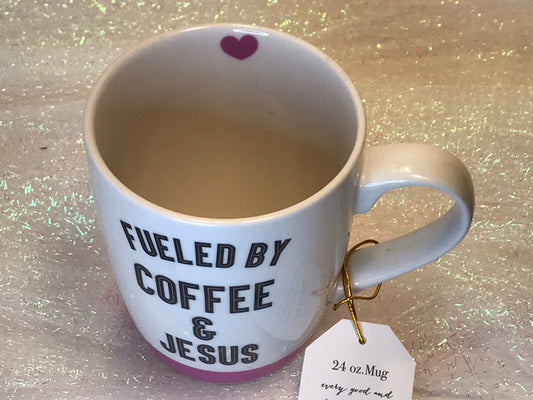 Kennedy International FUELED by COFFEE and JESUS New Bone China 24 Oz. Mug