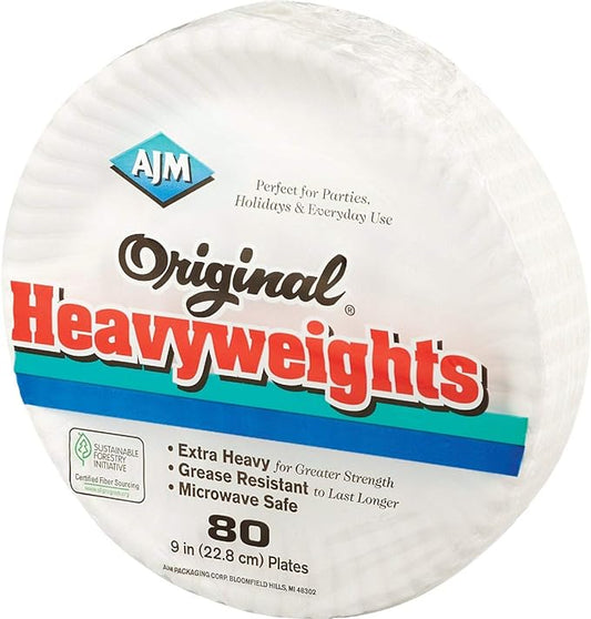 A J M Packaging Corp Heavyweights Paper Plates, White