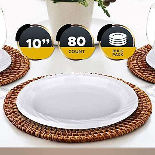 PAMI Premium Disposable Plastic Plates 10'' [Pack of 80]- White Party Plates for Dinner Desserts Appetizers