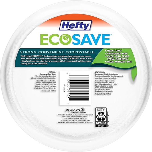 Hefty ECOSAVE Compostable Paper Plates 8.5 Inch 22 Count