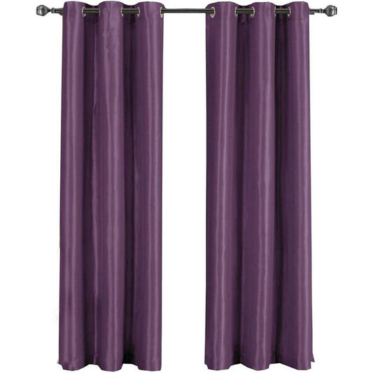 Set of 2 Purple Faux Silk Grommet Top Curtains - Elevate Your Space with 84 Inches of Window Elegance